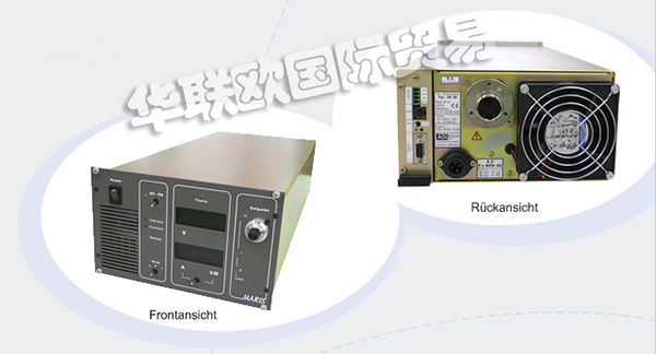 脈沖發(fā)生器RD 300與大多數(shù)ADL電源一起使用諧振開關(guān)原理。由于效率極高(30kW時為99.5%),該器件非常緊湊,僅產(chǎn)生高達(dá)150W的低功耗?,F(xiàn)有系統(tǒng)可以容易地改裝,因?yàn)榘l(fā)電機(jī)與DC電源并聯(lián)直接連接到陰極。該器件的工作頻率為2kHz。然而,對于外部信號發(fā)生器,頻率可以在0.2到3kHz的范圍內(nèi)變化??梢酝ㄟ^控制線連接多個發(fā)電機(jī),以實(shí)現(xiàn)自動同步。