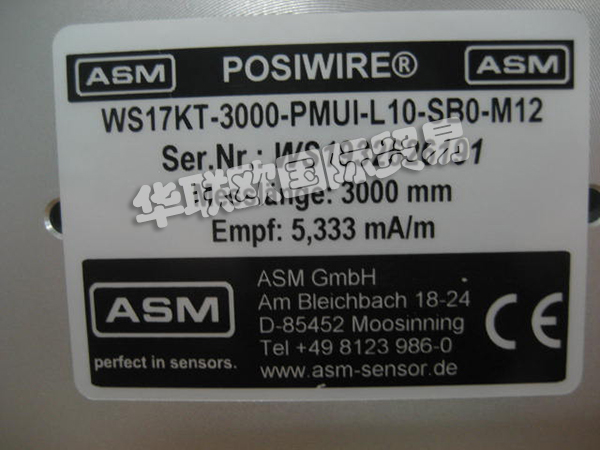 | ASM | 拉繩式位移傳感器 | WS17KT-3000-PMUI-L10-SB0-M12 | 6個 |