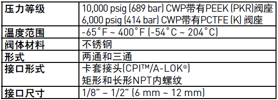1、操作扭矩小。2、手動(dòng)、電動(dòng)和氣動(dòng)控制可選。3、緊湊型FNPT螺紋形式適用于狹小空間。4、防吹出兩片式閥球/閥桿設(shè)計(jì)。5、流路各處工作壓力相等。6、PEEK耳軸式密封延長閥門使用壽命。7、兩通和三通形式可選。8、面板安裝厚度可達(dá)3/8" (9.6mm)。9、無需調(diào)節(jié)填料。10、顏色標(biāo)識防破裂手柄。11、手柄標(biāo)識流路方向。12、手柄限位銷。13、„多種US常用和SI標(biāo)準(zhǔn)接口可選。14、閥桿頂部標(biāo)記流路方向。15、100%出廠測試。16、緊湊型設(shè)計(jì)。17、HCT爐號追蹤