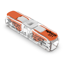 使用兩線、三線和五線連接器快速輕松地連接不同橫截面的所有導線類型。221系列連接器適用于12-24AWG和10-20AWG兩種型號的實心、絞合和細絞合導體。